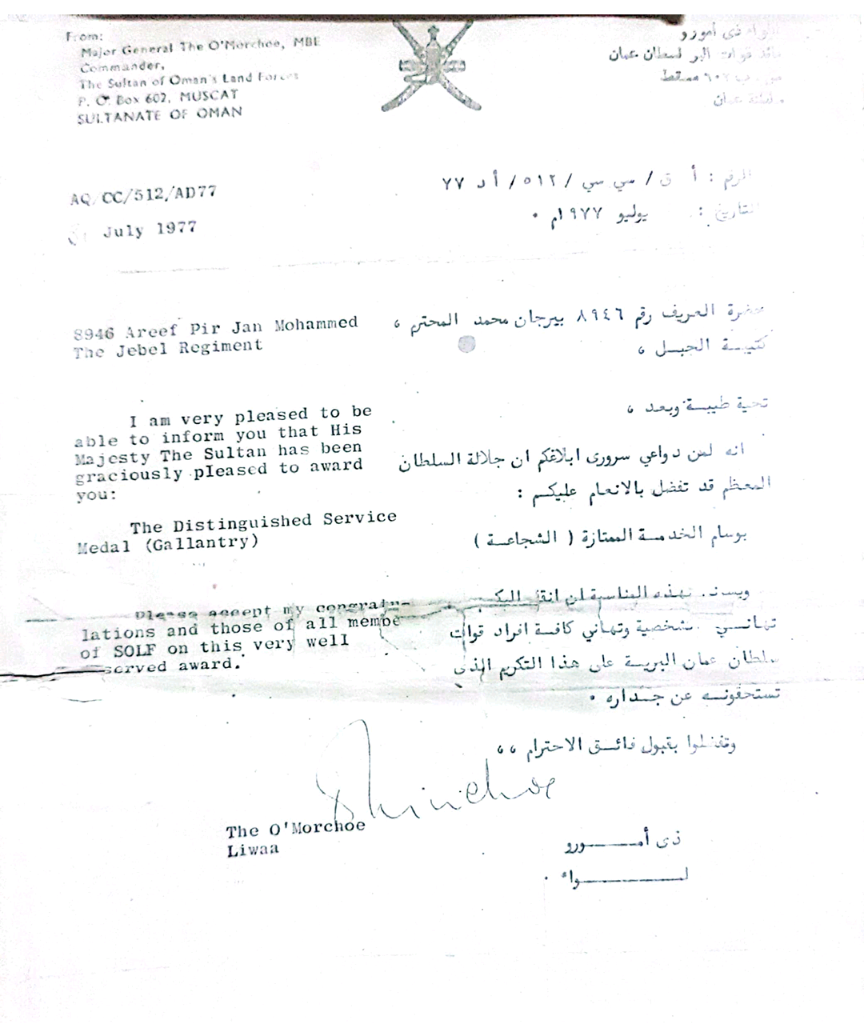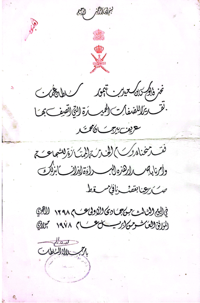 هذا الرجل و برتبة عريف حصل على وسام سلطاني من السلطان قابوس بعد عمله البطولي في حرب ظفار في بداية السبعينات